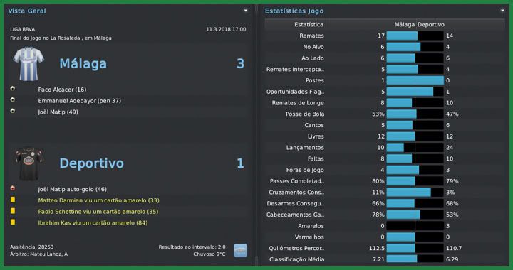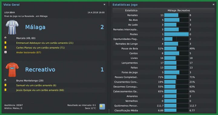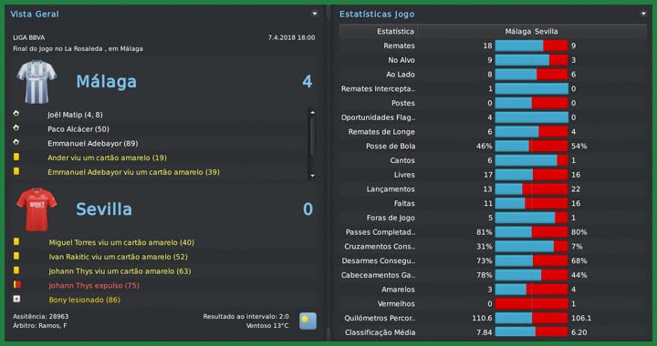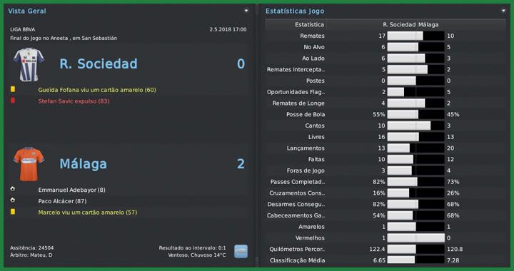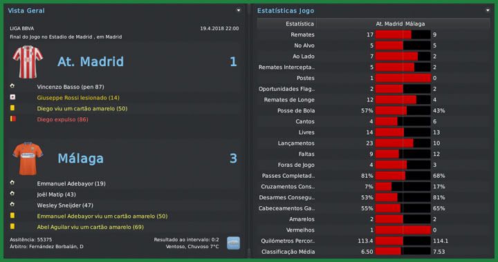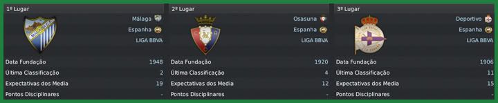 Bruno Trink Postado 5 de Junho 2011 Autor Denunciar Postado 5 de Junho 2011 Não seria fácil, eu tinha plena noção. O pensamento era jogar cada partida e ver o que acontecia. Conseguimos uma linda goleada sobre o Sevilla e derrotamos o Recreativo antes de chegar ao confronto com o Atletico de Madrid. Já imaginávamos uma derrota mas o time fez um excelente primeiro tempo e ganhou três pontos inimagináveis antes. O título ficou mais possível, mas o Málaga mostrou uma síndrome de Robin Hood. Recebemos um Mallorca lutando para se afastar da zona de rebaixamento e não fomos capazes de vencê-los, praticamente entregando a Liga ao Barcelona. Mais um 0 a 0 em casa contra o já rebaixado Levante ratificou a sina de ganhar as partidas mais difíceis e dar mole nas mais tranquilas. Apesar de tudo, foi uma temporada fantástica para um time recém chegado da Liga Adelante, com dois vice-campeonatos, já que fomos derrotados na final da Copa do Rei pelo Atletico. Sevilla | Recreativo | Atletico Madrid | Almería | Mallorca Real Sociedad | Valladolid | Levante | Espanyol | Atletico Madrid O que falar da campanha de um time que acabou de voltar da Liga Adelante e terminou a BBVA em segundo lugar, com apenas três derrotas e a melhor defesa do campeonato? Por mais próximo que tenhamos chegado, mesmo tendo podido ir mais longe se não tivéssemos perdido pontos bobos, o vice-campeonato do Málaga foi fantástico. Ficamos à frente das duas fortíssimas equipes de Madrid e conseguimos a classicação direta para a fase de grupo da próxima Champions League. Fomos escolhidos como a equipe de maior evolução, na frente do Osasuna, outra equipe que surpreendeu nessa temporada. O desafio, agora, será repetir a campanha no ano que vem. O favorito, sem dúvida, era o Atletico. Ainda mais jogando em Madrid, mesmo no campo do maior rival. Mas a vitória que conseguimos na Liga me deu esperanças de repetir o triunfo na Copa. A partida até foi equilibrada, mas um jogador fez a diferença: Sergio Agüero. Kun jogou muito, fez dois gols e decidiu a partida para os colchoneros. Mas, novamente, não tenho como reclamar da campanha do time que chegou a final batendo o todo poderoso Barcelona. Quatro nomes devem ser destacados no elenco malagueño nessa temporada. Paco Alcácer começou marcando muitos gols, era artilheiro do campeonato mas caiu um pouco no final e terminou em terceiro. Adebayor, seu companheiro de ataque, mesmo em claro declínio físico, apareceu sempre bem quando precisamos e marcou bons 18 gols. Sneijder foi o homem das bolas paradas com gols de falta e assistências mas, para mim, a grande contratação foi do camaronês Joël Matip. O zagueiro foi o terceiro artilheiro do time com doze gols e muitas vezes segurou a barra do capitão Aythami. Não posso deixar de mencionar o prêmio de melhor goleiro para o Pejic, prêmio que deve ser dividido com toda a defesa. Para a próxima temporada, minha ideia é contratar pontualmente. Temos alguns jogadores como o próprio Adebayor que acredito que não aguentam mais um ano em alto nível. Além de um atacante, pretendo trazer, se conseguir, um volante e mais um zagueiro. Não só consegui apenas montar um elenco qualificado o suficiente para ser vice-campeão espanhol como também um elenco que não destruiu os cofres do clube. Mantivemos o balanço financeiro positivo em mais de €5M e agora, com a classificação para a fase de grupos da Champions League, a tendência é que tenhamos mais dinheiro para levar esse clube aos títulos no ano em que completa 100 anos. Citar