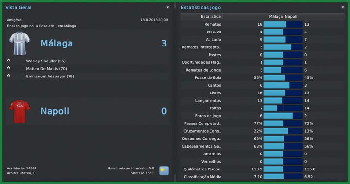 Bruno Trink Postado 8 de Junho 2011 Autor Denunciar Postado 8 de Junho 2011 Um elenco vice-campeão espanhol não é de se jogar fora. Era necessário reforçar mas sem perder a base e o entrosamento adquirido na temporada passada. Sendo assim, elegi as posições carentes para contratar, notadamente aquelas em que a idade começava a pesar para nossos titulares. Aythami, Sissoko e Adebayor dificilmente aguentariam mais um ano no mesmo nível e precisavam de substitutos. Para a zaga, o brasileiro Pedro já estava acertado desde março. Jovem, consegue algo raro que é aliar força e velocidade e tem tudo para formar uma excelente dupla com Matip. No ataque, acertamos com o italiano Matteo De Martis, ex-Arsenal, que passou o ano passado emprestado no Getafe, onde marcou 23 gols. A grande contratação, no entanto, é do Sergio Busquets. O volante, inexplicavelmente, fez parte de um pacote de dispensas do Barcelona, junto com Mascherano e Iniesta, e sua chegada mostra o crescimento do Málaga no cenário do futebol. No "vácuo" da negociação, trouxemos também o meia armador, segundo melhor jogador do mundo em 2010, para fazer uma sombra ao Sneijder. Outro jogador que ficou sem emprego depois de uma longa carreira no Liverpool foi o goleiro Pepe Reina. A meta não era uma posição que me incomodava mas eu não podia deixar passar essa oportunidade. Com 35 anos e 29 convocações para a seleção espanhola, Reina ainda é um excelente goleiro e trará toda sua experiência para o La Rosaleda. O zagueiro francês Reynaldo Lotiès chega por empréstimo para compor elenco. Já tinha praticamente fechado as portas para novas contratações quando o Planas, lateral esquerdo, ficou um tanto balançado com as especulações que chegavam à imprensa. Receoso de uma possível saída dele, abri os cofres e trouxe o Cristian Gómez, argentino mas com nacionalidade espanhola, que já estava na minha mira desde a temporada passada, quando voltou do futebol dos Estados Unidos para o River Plate. Damián Retuerta | Pedro | José Manuel Reina | Sergio Busquets Matteo De Martis | Reynaldo Lotiès | Andrés Iniesta | Cristian Gómez Para entrosar os quatro reforços que entraram direto no time titular fizemos quatro amistosos. Contra equipes de reputação próxima à nossa, fomos muito bem. Vencemos todas sem muitos problemas, inclusive o forte time do Napoli, atual vice-campeão italiano. Mas, como todos sabem, treino é treino... Parma | Wolves | Torino | Napoli A brincadeira agora é diferente. Depois da campanha da temporada passada, a expectativa agora é lutar pelo título, apesar da diretoria, inicialmente, achar que ficar no meio da tabela era suficiente. O caminho começa duro, com uma partida difícil contra o Valencia. Na sua primeira participação em uma UEFA Champions League, o Málaga caiu num grupo complicado, com Manchester United, Napoli e Rubin Kazan. Não será nada fácil e já começamos com uma longa viagem até a Rússia. Com os oito reforços, sete para o elenco principal, ficamos claramente com um grupo mais forte. Os dois destaques da temporada passada, Alcácer e Matip, tem novas duplas. Busquets, o novo volante titular, deve dar uma boa melhorada na transição entre a defesa e o ataque. Além do aumento de qualidade no onze principal, ficamos com ótimas opções no banco de reserva. Individualmente, ainda não dá para fazer frente aos elencos do Barcelona e do Real Madrid mas, com o esquema tático acertadinho do ano passado, podemos brigar com os dois gigantes. Uma notícia que me preocupou e chega em má hora é uma possível saída do sheikh Al-Thani da presidência do Málaga. Nem tanto pelo dinheiro, já que até hoje ainda não precisamos de injeções financeiras, mas pela turbulência que isso pode causar no elenco. A Copa do Mundo, vencida mais uma vez por uma seleção africana, provocou a habitual demissão em série de treinadores. Cuca, por exemplo, nem conseguiu classificar a seleção brasileira para a segunda fase e caiu. Uma semana depois da final, Milla recebeu proposta para dirigir a seleção da Nigéria, campeã em 2014. Em uma história tradicional, sem o desafio específico dessa, seria uma proposta interessante, mas o objetivo me faz querer manter o foco única e exclusivamente no Málaga. Citar