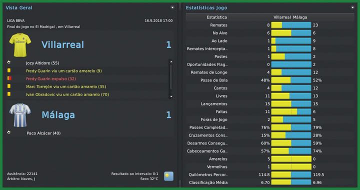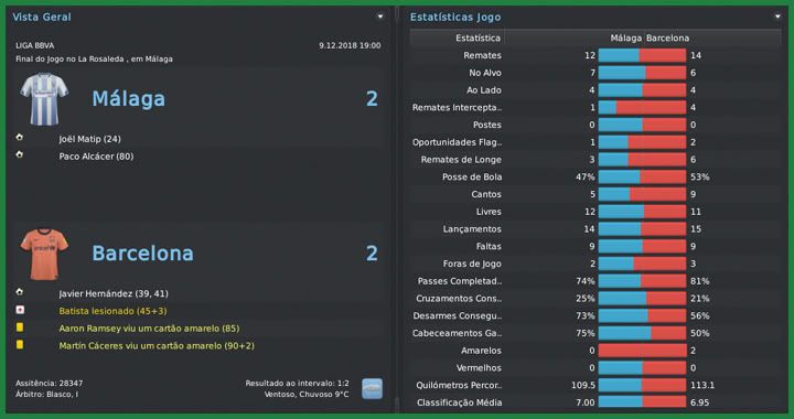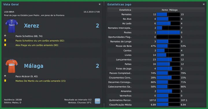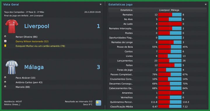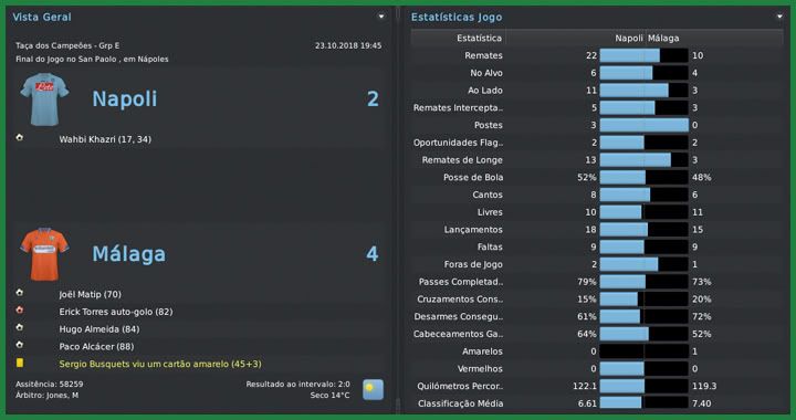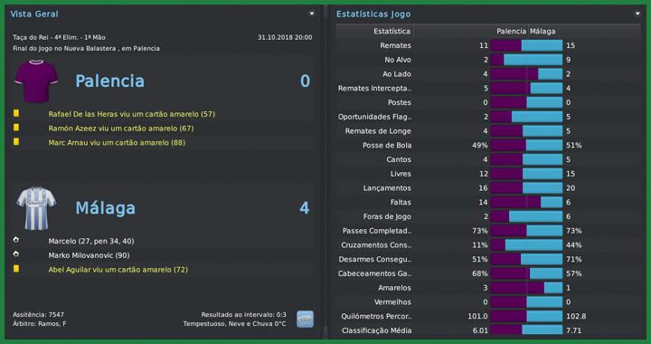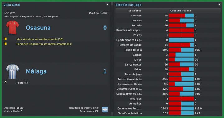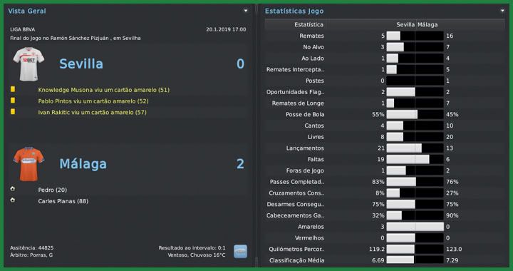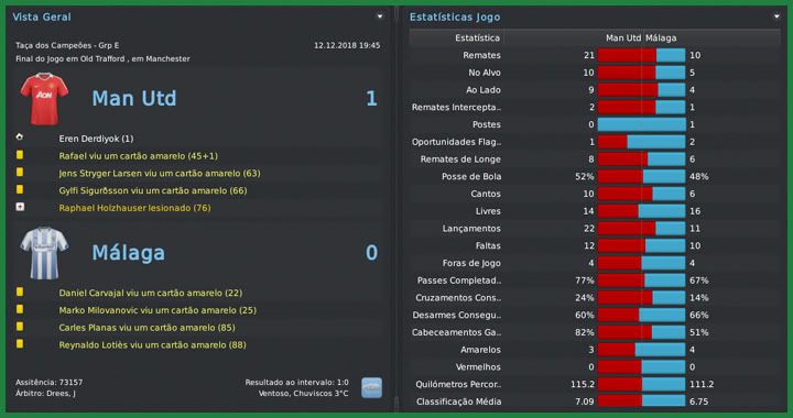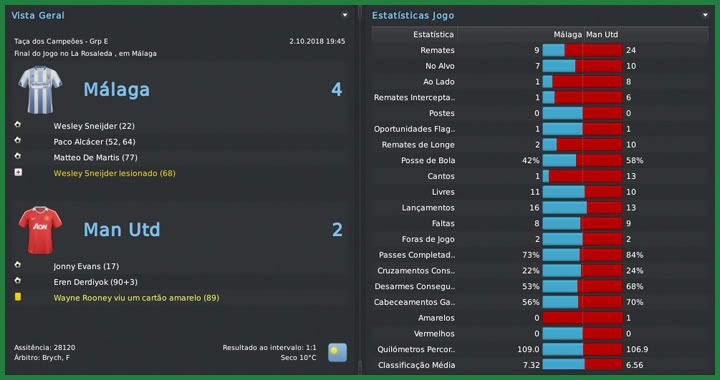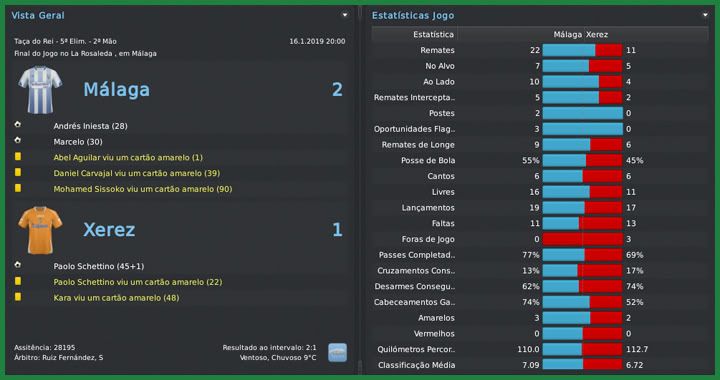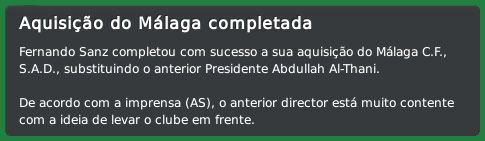 Bruno Trink Postado 11 de Junho 2011 Autor Denunciar Postado 11 de Junho 2011 Mais doze partidas pelas três competições que disputamos nessa temporada e conseguimos vencer nove. Tivemos também a primeira derrota no ano, mas numa partida que não valia muito e fomos com um time com apenas dois titulares. O grande jogo foi, sem dúvida, o empate com o Barcelona no La Rosaleda. Saímos na frente com um gol do Matip de cabeça mas, num apagão, "Chicharito" Hernández virou em dois minutos no final do primeiro tempo. O time se portou bem, pressionou nos 45 minutos finais e conseguiu o empate com Alcácer, sempre ele. Getafe | Palencia | Mallorca | Napoli | Athletic | Palencia Real Sociedad | Girona | Rubin Kazan | Celta | Barcelona | Manchester United Num grupo que à primeira vista parecia bem complicado, conseguimos a classificação já com duas rodadas de antecedência, depois de vencer o Napoli, em casa, mais uma vez de virada. Já garantidos na próxima fase, optei por dar mais atenção à Liga e escalar um time misto que venceu o Rubin Kazan. Mais reservas ainda na última rodada, no Old Trafford. Apenas Reina e Busquets jogaram, outros entraram no decorrer da partida, e perdemos a primeira do ano. Mesmo assim, por causa da goleada em casa, acabamos conseguindo o primeiro lugar do grupo. Líderes na Champions League, líderes também na Liga. Mas a briga está excelente, com Real Madrid e Barça na cola. Esse empate com os culés teria sido excelente, se não fôssemos atualmente postulantes ao título. Uma vitória nos deixaria cinco pontos na frente deles, o que seria fantástico já que nos "permitiria" perder no Camp Nou. Claro, ainda faltam 24 rodadas, muita coisa pode acontecer até o final do campeonato. Mas esse gostinho da liderança é muito bom! Sem dificuldades e com um time reserva, passamos pelo Palencia, que joga a 2ª Divisão B e enfrentamos o Xerez na próxima fase. Lá vem ele novamente. Nosso artilheiro Alcácer já marcou 16 vezes em 17 partidas e, com as quatro assistências, participou de 37% dos gols marcados pelo Málaga nessa temporada. Bem demais também continua o Matip, que acertou uma boa dupla com o Pedro. Chegamos próximo da abertura do mercado e alguns de nossos destaques tem sido cobiçados. Não pretendo liberar ninguém. Até dei uma pesquisada em possíveis reforços mas estou satisfeito com o elenco. Mesmo assim, já estou pensando em abordar jogadores cujos contratos encerram em junho para melhorar ainda mais o grupo. Mas isso é papo para a próxima temporada. A transição demorou, mas foi indolor. A saída do sheikh foi bem tranquila e não influenciou nada no campo. Quem voltou à presidência foi o ex-zagueiro Fernando Sanz, que era o presidente do clube antes da venda para o sheikh Al-Thani e estava atuando como seu vice. Citar