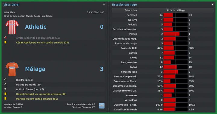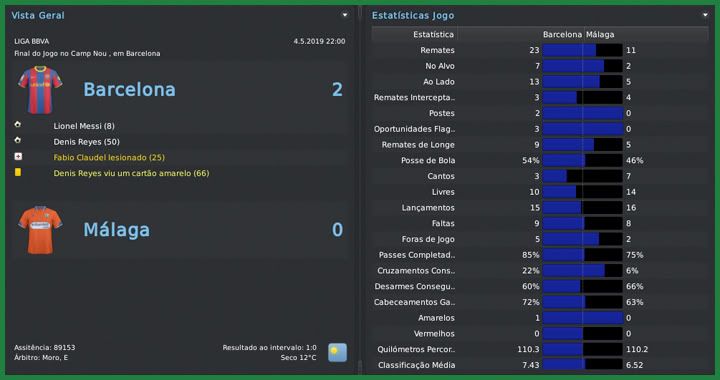Bruno Trink Postado 17 de Junho 2011 Autor Denunciar Postado 17 de Junho 2011 Perdemos duas vezes nesse mês de maio, fato que não havia ocorrido nessa temporada. Mas perdemos quando podíamos ter perdido. A derrota para o Barcelona já era esperada e perder para o Birmingham não nos impediu de chegar à final da Champions League. Outros dois resultados que não estavam bem nos planos acabaram "se anulando" e conquistamos o título espanhol com uma rodada de antecedência, o que possibilitou poupar os titulares na última rodada para a decisão da UCL. Celta | Sporting | Birmingham | Barcelona | Birmingham Osasuna | Hércules | Real Madrid | Sevilla Nessa história, eu não consegui fazer o que eu sempre gostei, acompanhar a evolução dos newgens que eu contrato. Na semifinal da Champions League, tive oportunidade de rever dois em quem eu apostei no Birmingham: Jorge Lagos e Eric Diarra. O chileno está com apenas 23 anos e já é um dos melhores atacantes do mundo enquanto o goleiro deu azar de ser reserva do Lloris na seleção francesa. Daquela época, continuam no Birmingham o Tolói, o Roderick Miranda, o Vela, o Viviano e o Sandro, além de outro newgen, o Farai Kawashu. O confronto das semifinais pareceu espelhado. Nos primeiros 90 minutos, no La Rosaleda, domínio total do Málaga mas sofremos um gol, do Vela, que poderia ter complicado a nossa situação, já que perder por 2 a 0 na Inglaterra não seria nenhum absurdo. O jogo da volta foi igual, mas para o lado deles. Lagos abriu o placar no primeiro tempo mas conseguimos o nosso gol logo na volta do vestiário. Marilungo colocou o Birmingham na frente mais uma vez mas conseguimos segurar o resultado até o final. O adversário da grande decisão será o Barcelona, equipe que ainda não conseguimos vencer nessa temporada: em quatro jogos, foram duas derrotas e dois empates. Destaque negativo para as contusões dos dois atacantes titulares. Alcácer e De Martis não jogam mais pelo Málaga nessa temporada. Quando sofremos o gol de empate do Sporting já nos acréscimos eu pensei que "a vaca tinha ido para o brejo". A derrota para o Barça na partida seguinte, resultado normal, complicou ainda mais nossa situação, já que ainda teríamos o Real Madrid no Bernabéu. Vencemos Osasuna e Hércules em casa e chegamos à penúltima rodada em clima de decisão. Se perdêssemos, o título poderia escapar na última rodada. Para piorar, os merengues abriram 3 a 0 no primeiro tempo. Mas o time teve uma reação fantástica, o ataque reserva composto por Marcelo e Gandhi Tena funcionou e chegamos a um empate inimaginável. Empate com gosto de vitória e título. Na última rodada, me dei o luxo de poupar todos os titulares, tirando-os até do banco de reservas. Assim, tive que escalar um ataque com juniores e, no banco, jogadores do Málaga B. Mesmo assim, conseguimos um empate contra o Sevilla. Alcácer, mais uma vez, terminou em terceiro na tábua de artilheiros e Milla foi, novamente, o melhor treinador da Liga. Parecia que eu estava adivinhando. Perdi, de uma só vez, o meu ataque titular e tive que apelar para os reservas na reta final da temporada. Quando Tena saiu contundido no final da partida com o Osasuna, eu me vi na possibilidade de ter que alterar o esquema do time, já que não tinha mais nenhum atacante de ofício inscrito, tanto na Liga quanto na Champions. Ainda bem que não foi nada grave e ele perdeu apenas a partida seguinte. O fato é que Alcácer e De Martis foram responsáveis por 51 dos gols do Málaga nessa temporada e farão muita falta na final contra o Barcelona. A diretoria procurou Milla duas vezes para tratar da renovação do seu contrato. Na primeira, ofereceu €120 mil por mês, mesmo salário que o camaronês já recebe, e pedi para adiar até o fim da temporada. Depois do fim do campeonato espanhol, vieram novamente com a mesma proposta e, sem poder adiar, eu rejeitei. No dia seguinte, o presidente ofereceu €185 mil mensais e eu adiei mais uma vez. É o desespero para segurar o treinador campeão. Citar