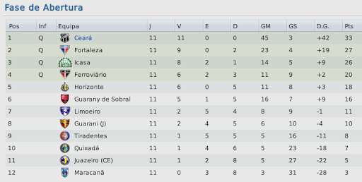 mfeitosa Postado 22 de Maio 2011 Autor Denunciar Postado 22 de Maio 2011 (editado) Mais um turno se passou pelo Campeonato Cearense e seguimos 100% até o seu término, onde nos sagramos Tri-Campeões Estaduais, feito que o Ceará não alcançava desde 1998 (foi Tetra em 1999). Estreamos no Returno com uma goleada sobre o Tiradentes e seguimos vencendo contra Icasa, Guarany de Sobral, Horizonte e Ferroviário, destaques para Martín Cauteruccio, o jogador mais valorizado do atual elenco, e para o meia Danilo Dias, investimento barato da temporada passada que tem me surpreendido a cada rodada. Marcinho e Elias que se cuidem! Já no clássico contra o Fortaleza, apesar do placar apertado, 2 a 1, a partida foi tranquila para o alvinegro. Apenas acho que temos levado muitos cartões amarelos. Até agora não temos sofrido com isto, mas constantes desfalques por suspensão numa Série A podem ser fatais. Enfim, seguindo o calendário, vencemos Limoeiro, Juazeiro, Quixadá e Maracanã, todos por goleada, e por fim o Guarani de Juazeiro, garantindo a liderança isolada do Segundo Turno. Na Semi-Final, enfrentamos o Guarany de Sobral, que pouco pôde fazer para segurar o Vovô, que venceu sem sustos, 3 a 1. Na grande Final, mais uma vez deu Clássico-Rei. Eis a partida mais complicada desta temporada. Finalmente, o Fortaleza conseguiu se impôr frente ao Ceará e nos deu bastante trabalho. Vencemos por 1 a 0 e não foi nada fácil garantir mais esta vitória. O herói do jogo foi o atacante Marcelo Nicácio. Com este título, agora são faltam dois para o objetivo do Penta-Campeonato! Quanto aos destaques individuais, o meia Elias faturou pela segunda vez o prêmio de Melhor Jogador da competição, seguido de Cauteruccio e Figueroa. Na Artilharia, uma supresa. Marcelo Nicácio disparou e conseguiu finalizar o Cearense à frente de Cauteruccio e Alemão, com 17 gols. FASE FINAL | DESTAQUES INDIVIDUAIS Na Libertadores da América, conseguimos a classificação com certa tranquilidade, como eu já esperava. Entretanto, superamos as expectativas e encerramos a Fase de Grupos à frente do Estudiantes. Estreamos exatamente contra os argentino, no Castelão, e fizemos bonito. Vencemos de virada, com dois gols de Alemão e um de Dirceu, 3 a 1. Em seguida, fomos ao Hernando Siles, onde goleamos o The Strongest por 5 a 1, onde Germano foi o grande nome da partida. Pela terceira rodada, recebemos o Universidad Católica e também aplicamos uma bela goleada, 4 a 0, sem chance para os chilenos. No segundo jogo contra o Universidade Católica, uma vitória decidida nos detalhes. Começamos perdendo e conseguimos empatar ainda no primeiro tempo. Gonzalo Sepúlveda foi expulso logo no início da etapa complementar e facilitou o nosso caminho para mais uma virada na Libertadores, 2 a 1. Por fim, voltamos a vencer o The Strongest, 2 a 1, e asseguramos a liderança do Grupo F com o empate importantíssimo frente ao Estudiantes, em pleno Luis Hirsch, 1 a 1. Com este resultado, encaramos o Universitario, do Peru, enquando o Estudiantes encarou o Cruz Azul nas Oitavas-de-Final e se deu mal. Conseguimos uma ótima vitória contra os peruanos, 1 a 0 fora de casa, o que nos deu tranquilidade para o jogo de volta no Castelão. Em um jogo cheio de alternativas e muitos gols, voltamos a vencer o Universitario, 4 a 2, e passamos adiante na competição. Campanha história até aqui, mas agora teremos o São Paulo pela frente, nas Quartas-de-Final. CLASSIFICAÇÃO | FASE FINAL Editado 22 de Maio 2011 por Marcelo Feitosa Citar
