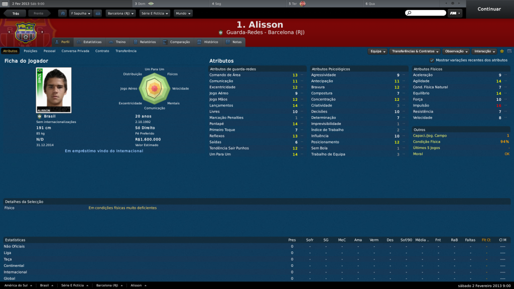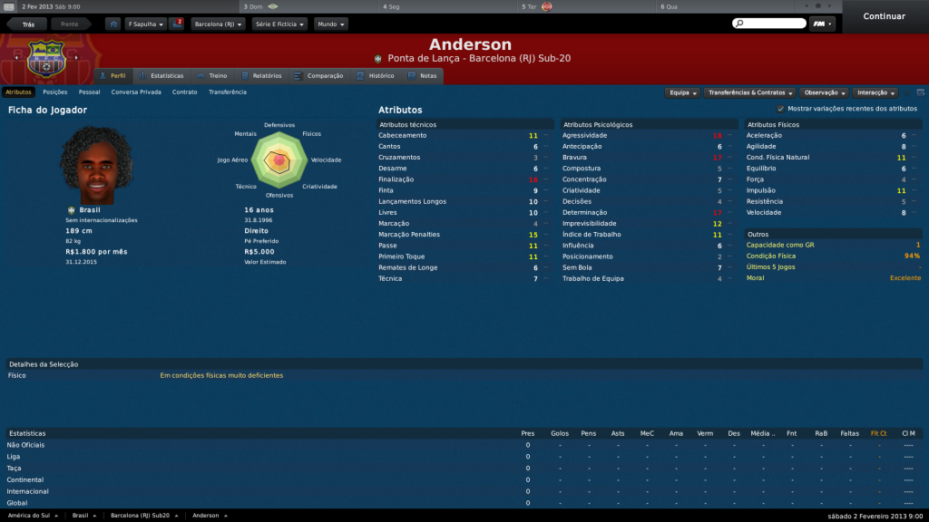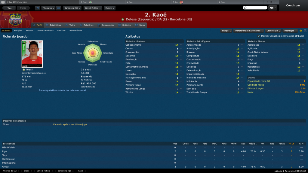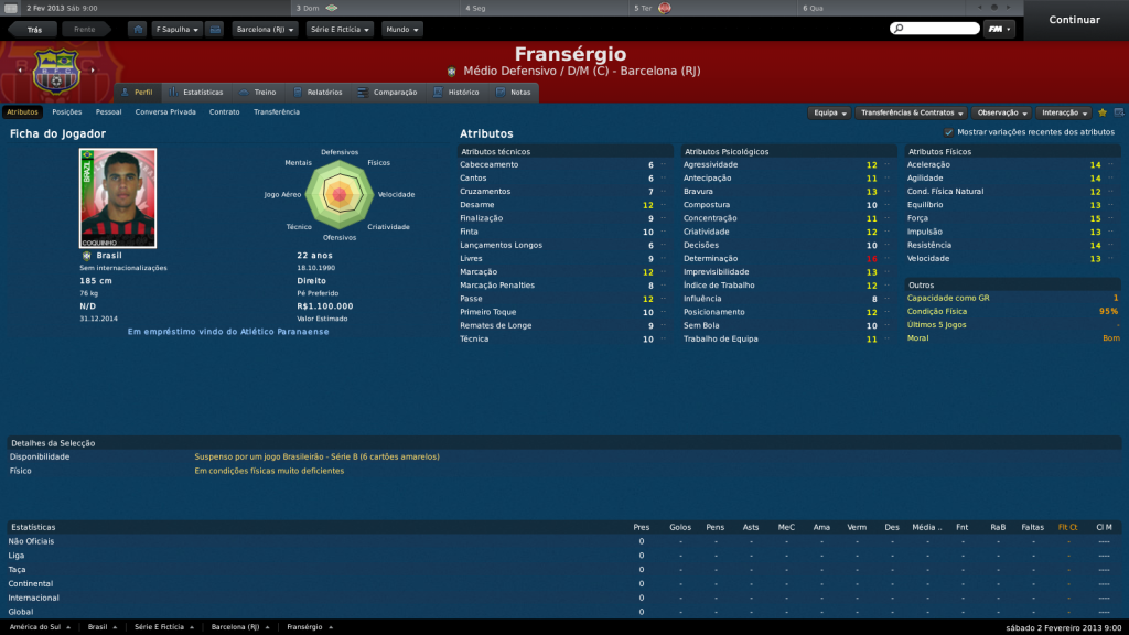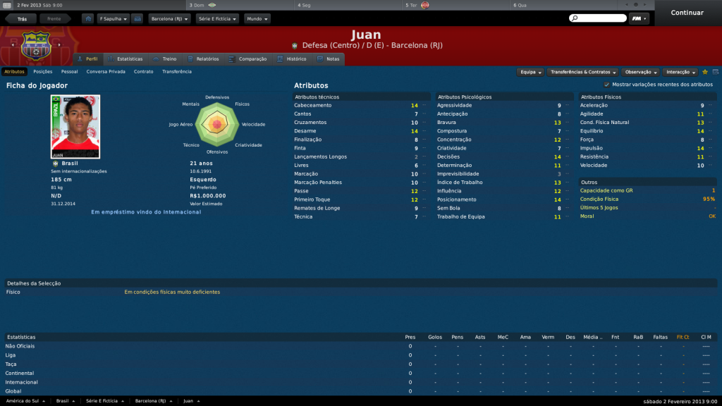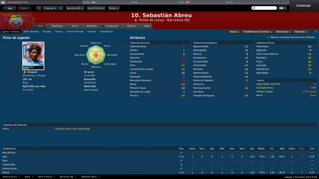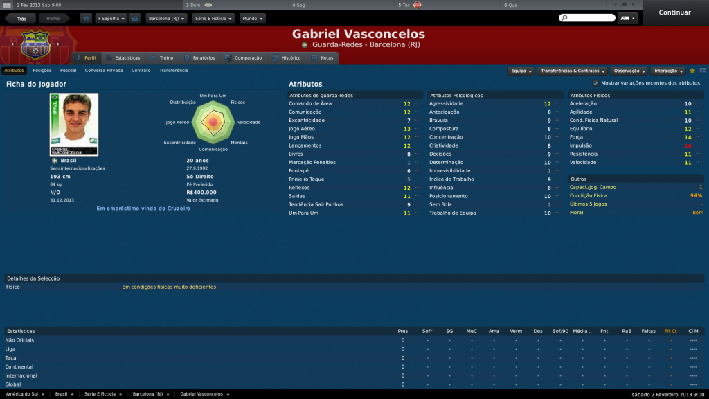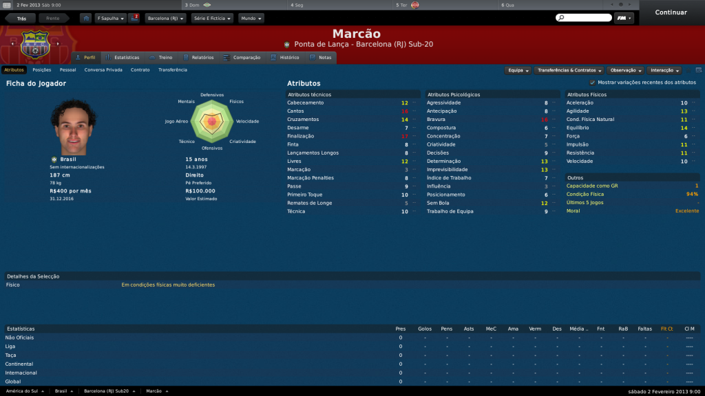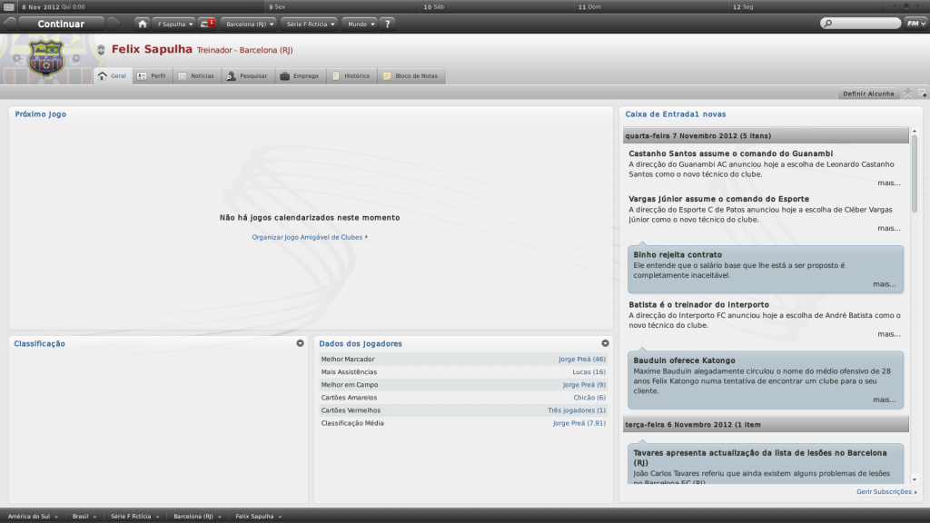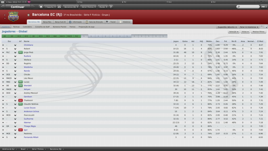 Jirimias Postado 18 de Junho 2011 Autor Denunciar Postado 18 de Junho 2011 Parabéns pela Promoção, agora é manter o Barcinha na elite do futebol carioca e tentar a promoção pra Série D Valeu!O foco é manter o time no cariocão e chegar à Série D, pelov isto serão duas tarefas difícies. Caramba, essa reputação nacional caiu bem, hein! Deve dar pra atrair melhores jogadores. O orçamento pra salários melhorou bastante, espero que dê pra "inchar" bastante o elenco. E a base do Barcinha? Rendendo frutos? Opa, veio em ótima hora.Foi inesperado tb, mas dentro da normalidade já que todos os clubes da Série E tem reputação nacional. Tanto para inchar o time, como tb investir na comissão técnica que tava bem pequena. A base ainda nada, é muito limitada a nossa estrutura, nenhum destaque na última fornada.Vou começar a comprar revelações dos outros clubes. Citar