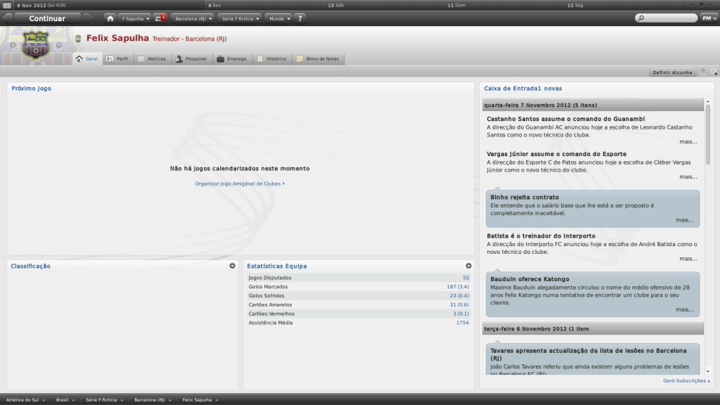 Jirimias Postado 18 de Junho 2011 Autor Denunciar Postado 18 de Junho 2011 NOVA FUNÇÃO DE SAPULHA DISPENSA PARTICIPAÇÃO DA TORCIDA. Uma reunião de cerca de duas horas entre a diretoria do Barcelona,representantes do FCM e o treinador Félix Sapulha definiram a nova função que será exercida pelo treinador.A partir de agora Sapulha assumirá a função de manager do clube, que entre outras atribuições, ele passsará a negociar diretamente com os jogadores.A mudança de função de Sapulha reflete diretamente nas ações do FCM, uma vez que os membros do Futebol Clube Manager não poderão mais escolher seus jogadores preferidos. O administrador do FCM, Bruno, afirmou que teme uma repercurssão negativa no fórum, mas acredita que em breve os membros acostumarão com a função mais passiva que exercerão a partir de agora.Bruno salientou que não pôde intervir na decisão do Barcelona, uma vez que a nova função de Sapulha foi uma exigência do treinador para a renovação do contrato. Pessoal, Vou interromper as votações da torcida para dinamizar o save, já que aguardar a votação sempre deixava o Barça em desvantagem a outros clubes nas negociações, além de parar o save.Espero que compreendam a decisão.Ainda estou estudando uma outra forma de interação, qualquer novidade eu comunico.Obrigado! Citar