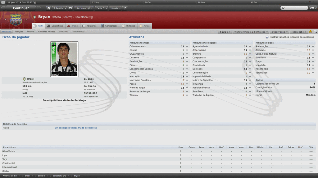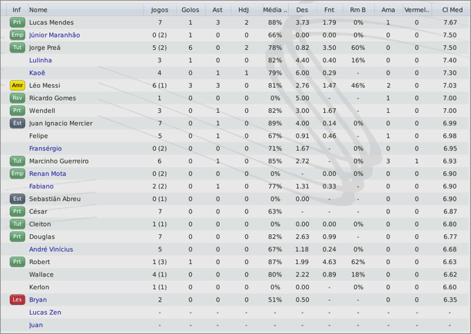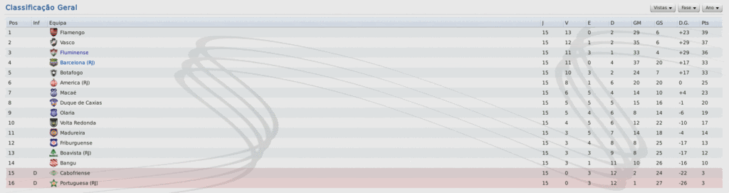 Jirimias Postado 25 de Junho 2011 Autor Denunciar Postado 25 de Junho 2011 Tá fazendo um belo trabalho, mesmo com estes poréns. Não deixa a bola cair. Não, não pode cair.Vamos seguir em frente.Obrigado pelo apoio! aaah, agora entendi a merda com o muricy anteriormente... bizarro mesmo Pois é, mas até então isso não me atrapaplhou, mas esta da CdB foi foda. bizarro esse bug's mas bola pra frente com o save... que versão do update tu usou jiri? Tenho que seguir, estou gostando muito de jogar o save. Cara, eu não sei, era o mais recente na época que eu iniciei o save. Comunicado - Novos planos Estive pensando, e se os problemas do save não pararem na extinção da Copa do Brasil?E se surgirem problemas lá na frente, no Brasileirão,Libertadores,Sul-Americana e etc? Pensando nisso eu decidi o seguinte: 1- assim que o time conseguir a promoção para a Série C, nesta ou em outra temporada, eu fecho este tópico; 2- este tópico irá ganhar a denominação de "Primeira Fase - Futebol Clube Manager"; 3- abrirei um novo tópico ( caso a promoção ocorra antes do início do mês de Julho, eu aguardarei a mudança de mês para não confrontar com as regras de Save do Mês); 4- no editor o Barça entrará na Série C e no Carioca, a diferença é que o save partirá de 2011; 5- jogadores que pertencem ao clube serão mantidos ( isso ainda estou em dúvida, pq Abreu,Elson estarão bombando ainda, mas de uma forma ou de outro compensa o fato de eu perder a base que criei para o Barça). Daqui a pouco posto a Taça Rio e o save continua. Citar
