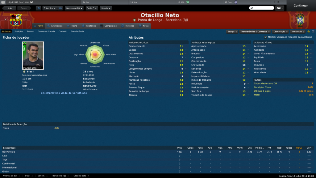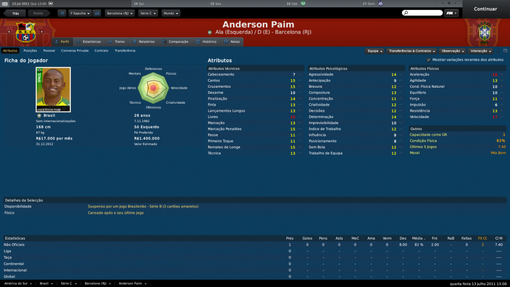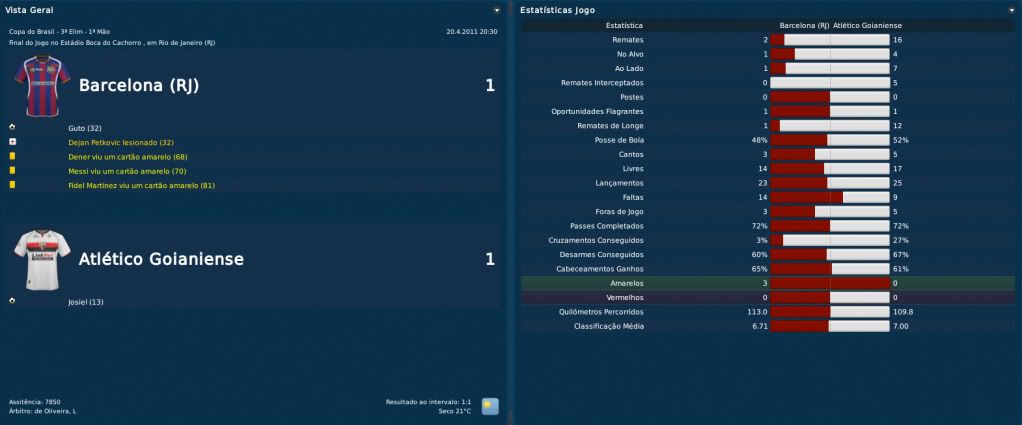 Jirimias Postado 3 de Julho 2011 Autor Denunciar Postado 3 de Julho 2011 É, aí fica complicado. Depois de trabalhar e jogar com tanta garra pra tentar alguma coisa no Carioca, perder nos pênaltis é complicado. Agora é pensar na Série C! Boa sorte. O Andrade chega a perder algum jogo da Série C? Infelzimente erramos nas penalidades, mas estamos chegando perto. Se o Andrade não lesionar de novo, dá pra contar com ele na C, só não vai dar para encarar a Copa do Brasil. Do estadual pra Série C tem aquele intervalo de dias né? Será bom pra recuperação do Andrade. Tem.São três meses, mas antes tem a Copa do Brasil e não poderei contar com ele. a campanha foi boa, pena a vitória da fase classificatória nao se repetir na semifinal, agora é trabalhar e focar na série C e na copa do brasil :P Eh, fora este jogo, não lembro qual foi a última vez que perdi uma disputa de penaltis, mas esta aí foi difícil de engolir.Bola pra frente! Brilhante campanha, isso mostra a evolução do Barcinha, agora tem que se preparar para subir e tentar incomodar os gigantes do Rio. Estamos chegando, e agora não somos mais goleados, enfim, o time está evoluindo.Já somos o quinto melhor do estado rs. Por um quase... Mas na próxima vai! Foi mesmo, na próxima tem que ser diferente. Citar