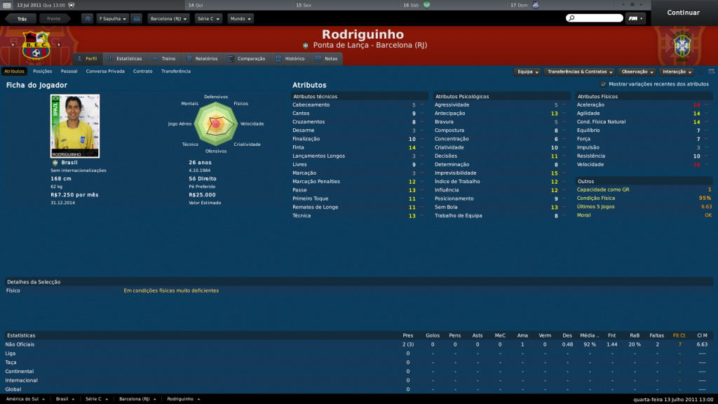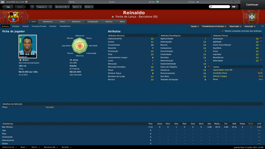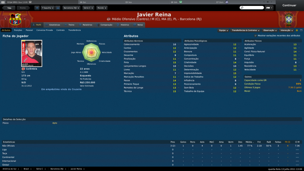 Jirimias Postado 5 de Julho 2011 Autor Denunciar Postado 5 de Julho 2011 Últimas notícias: 25.05.2011 BARÇA RETORNA INVICTO E CAMPEÃO DA INTERTEMPORADA Seis jogos, quatro vitórias e dois empates, doze gols marcados e quatro gols sofridos, assim foi o retrospecto da preparação do Barça para a Série C, incluindo o título da Primeira Taça Augusto Vieira. Os destaques da preparação foram os atacantes Herrera e Otacílio Neto, que pareceram bem dispostos a recuperar a fama matadora do Barcelona no passado. Mas nem tudo foi alegria na preparação, o Barcinha não poderá contar com Léo Messi nos próximos três meses, devido a uma lesão em jogo.Outro problema do clube é o atacante Jorge Preá, que foi barrado, e fez algumas declarações que tumultuaram o ambiente no clube ... 18.05.2011 BARCELONA DE CARAS NOVAS NA INTERTEMPORADA! Sapulha falava sério quando disse que iria realizar mudanças no time após a eliminação da Copa do Brasil. Com algumas dispensas e alguns jogadores negociados, o Barcelona conseguiu reduzir sua folha salarial e apresentar novos reforços.Como sempre, o treinador do Barça escolheu a experiência como critério nas contratações, mas não dispensou a juventude. Contratados: Sérgio Herrera | Rodriguinho | Roberson | Reinaldo | Otacílio Neto | Javier Reina | Fabiano Erick Flores | Anderson Paim O novo time começa a jogar a intertemporada na próxima semana, e a expectativa é a Taça Augusto Vieira, em homenagem a um dos fundadores do clube... 10.05.2011 PARCERIA: CLUBE ACERTA PARCERIA COM BANGÚ E ESPERA AMISTOSO FAMOSO! Enquanto o Barcinha aguarda pela resposta do xará famoso para o encontro dos Barcelonas,o clube acertou a parceria com o Bangú.Com a implantação da parceria, o Barça poderá emprestar jogadores para o clube, o que pode ajudar na experiência dos mais jovens... 28.04.2011 SÉRIE C:GRUPO DIFÍCIL PARA O BARCELONA! O Barcelona terá duro trabalho na Série C, e a vida dura do clube já começa na Fase de Grupos, onde a equipe terá pela frente clubes de tradição e candidatos à promoção.Criciúma,CRB,Gama e Macaé farão companhia para o Barcinha no Grupo D... 27.04.2011 MESMO SEM PERDER, BARCINHA DÁ ADEUS A COPA DO BRASIL. Dois empates selaram a sorte do Barcelona na Copa do Brasil, o primeiro em casa por 1-1 foi mais decisivo, pois os gols marcados fora de casa são critério de desempate.Após o empate de 0-0 n Serra Dourada, Félix Sapulha mostrou descontentamento e promete mudanças na equipe, principalmente no setor ofensivo.... Citar
