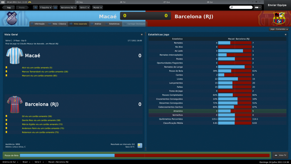 Jirimias Postado 5 de Julho 2011 Autor Denunciar Postado 5 de Julho 2011 eeeh... agora o preá ta começando a ficar ruim pro nivel que o time precisa ehuehuehuee trouxe gente boa, vamos ver o time agora Verdade, pra Série C ele não serve. Agora é colocar a galerinha nova em campo e vê se o time melhora. Graaaandioso Paim, baita reforço. O problema foi essa eliminação precoce na Copa, que pena. E já aviso, se o Preá vier com graça pra cima do pessoal no clube, eu vou arrebentar a cara dele. Safado, mal caráter. Quebrei o Tucson dele mesmo. Só quero ver se ele vai continuar com palhaçada, pior vai ser pra ele. kkk coitado do Preá, juntou o salário da vida inteira pra comprar o Tucson dele, mas ele merece, tá muito cheio de gracinha rs. Paim foi um achado, mas tem um empresário chato pacas de negociar. Nem foi tão precoce assim a eliminação, chegamos perto das Oitavas, para a primeira experiência tá bom rs pena a eliminação na copa do brasil, agora é aproveitar essa boa inter temporada para entrar bem na série C Ñão esperava ir muito longe na CdB, o jogo com a Ponte já tinha mostrado que ainda não estávamos prontos, agora é concentrar na C Pena a eliminação na Copa do Brasil, mas agora bola pra frente e que a Série C nos espere Foi uma penas mesmo, mas é vida que segue, temos que fazer melhor na C. Pena, mas ia ser difícil mesmo. Agora vamo faturar a série C Era complicado, o time foi até um pouco além do que eu esperava. Vamo que vamo! Ae, li o save inteiro ^^, agora sou torcedor do Barcinha também, montou um ótimo elenco pra Série C, deve ser campeão fácil :yeeeaaahhh: Parabéns Jiri, desde sempre fazendo grandes saves :specool: Obrigado pela leitura.Seja bem-vindo ao clube hehe. Espero que o título venha, mas a promoção já será excelente. Obrigado,Guilherme! :thumbsup: Citar