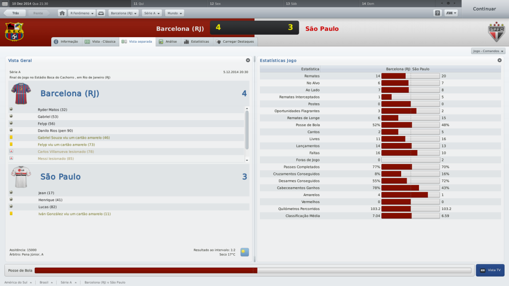 Jirimias Postado 30 de Julho 2011 Autor Denunciar Postado 30 de Julho 2011 Comunicado: Completo oito temporadas deste save, e já me sinto um pouco cansado não só do save, mas também do FM.Por este motivo decidi finalizar o save nesta temporada, logo após o Mundial, indiferentemente do resultado conquistado no torneio.Me diverti bastante neste save, e fiquei muito feliz pela participação de vocês que fez valer a pena ter investido neste projeto.Logicamente ficaram algumas coisas para cumprir, como o Carioca, e talvez fique também o Mundial, mas estou convicto de que minhas expectativas quanto ao save foram cumpridas. Quando falo que me cansei do FM, não quer dizer que vou parar de jogar, até porque não consigo, mas tentarei fazer algo que possa me dar motivação pra continuar jogando.Por isso optei pela experiência de treinar a Seleção Brasileira, no save que acabo de iniciar.Além disso, treinar uma seleção representa ter menos jogos o que vai de encontro ao meu atual momento em que o tempo disponível está cada vez mais raro devido aos estudos. Espero que compreendam a decisão, e acompanhem o final deste save. Abraços! Citar