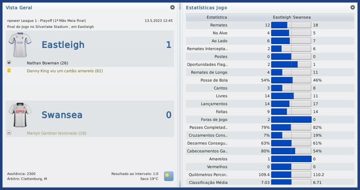 Bruno Trink Postado 10 de Agosto 2011 Denunciar Postado 10 de Agosto 2011 Londres, 21 de maio de 2023 Entramos nos playoffs como franco-atiradores. Só por ter chegado tão longe já estava satisfeito e passei isso para a equipe durante a semana de preparação para a partida contra o Swansea. Jogaríamos em casa mas, mesmo assim, os cisnes eram favoritos. Jogar como visitante dentro do nosso próprio estádio já tinha sido a estratégia em alguns jogos contra times mais fortes e não seria diferente agora. A única mudança foi mesmo a entrada do Bowman no lugar do Blake, que não marcava um gol há mais de 600 minutos. A aposta deu certo e o garoto que veio do Everton fez o gol da vitória. Uma vantagem pequena mas importante para o jogo em Gales, três dias depois. Nossa situação melhorou muito quando D. Borg marcou, a nosso favor, um pênalti muito reclamado pelos jogadores e pelo Andrea Mandorlini. Hughes, que não tinha nada com isso, marcou. A partir daí, só precisamos aproveitar o desespero adversário. Eles voltaram do intervalo com tudo e nós aproveitamos dois contra-ataques para matar a partida. O artilheiro Scott Jackson diminuiu mas Carles deu números finais à partida que nos levou para Wembley. Na outra semifinal, pela classificação final, esperava-se mais equilíbrio, mas o Chesterfield passou tranquilo pelo Rotherham. Nossa postura foi a mesma, respeitando o adversário mas confiante de que poderíamos surpreender novamente. Durou 21 minutos e Lee Nowak completou uma bela jogada e abriu o placar. Já tínhamos tomado um 4 a 1 deles na fase de classificação e eu não podia correr o risco de abrir o time logo e sofrer outra goleada. Por isso, o jogo ficou morno, já que eles não precisavam forçar e nós, com receio e um tanto quanto acomodados com o não-favoritismo, não pressionamos. Com a vantagem no placar, os spireites não nos ofereciam o contra-ataque e, lá pelos 20, 25 do segundo tempo, eu decidi soltar mais o time. No minuto final, um lance curioso. Perdemos uma posse de bola e eles vieram num contra-ataque que acabou resultando em escanteio. Bola na área, a zaga tirou e, agora, o contra-ataque era nosso. Três, quatro toques, bola para Carles, gol de empate. Fomos para a prorrogação com a moral nas alturas. Só que, logo no primeiro minuto, David Wilson se machucou e nos deixou com dez. Puxei White, improvisado, para a zaga, recuei os dois meias para as alas, fechei o time e tentei segurar os trinta minutos para, quem sabe, chegar nos pênaltis. O Chesterfield, claro, veio para cima, mas os dois times estavam muito cansados. Aos nove do segundo tempo, conseguimos um escanteio. Cobrança na segunda trave, Danny King, com seus 2,01m, foi lá em cima e cabeceou no contrapé do goleiro. Muita comemoração. Seguramos bem a pressão nos minutos finais e a vaga era nossa. Contrariando todas as expectativas, o Eastleigh estará na Championship na próxima temporada mas, antes de pensar em reforços, vou tomar um pint para celebrar essa conquista histórica.